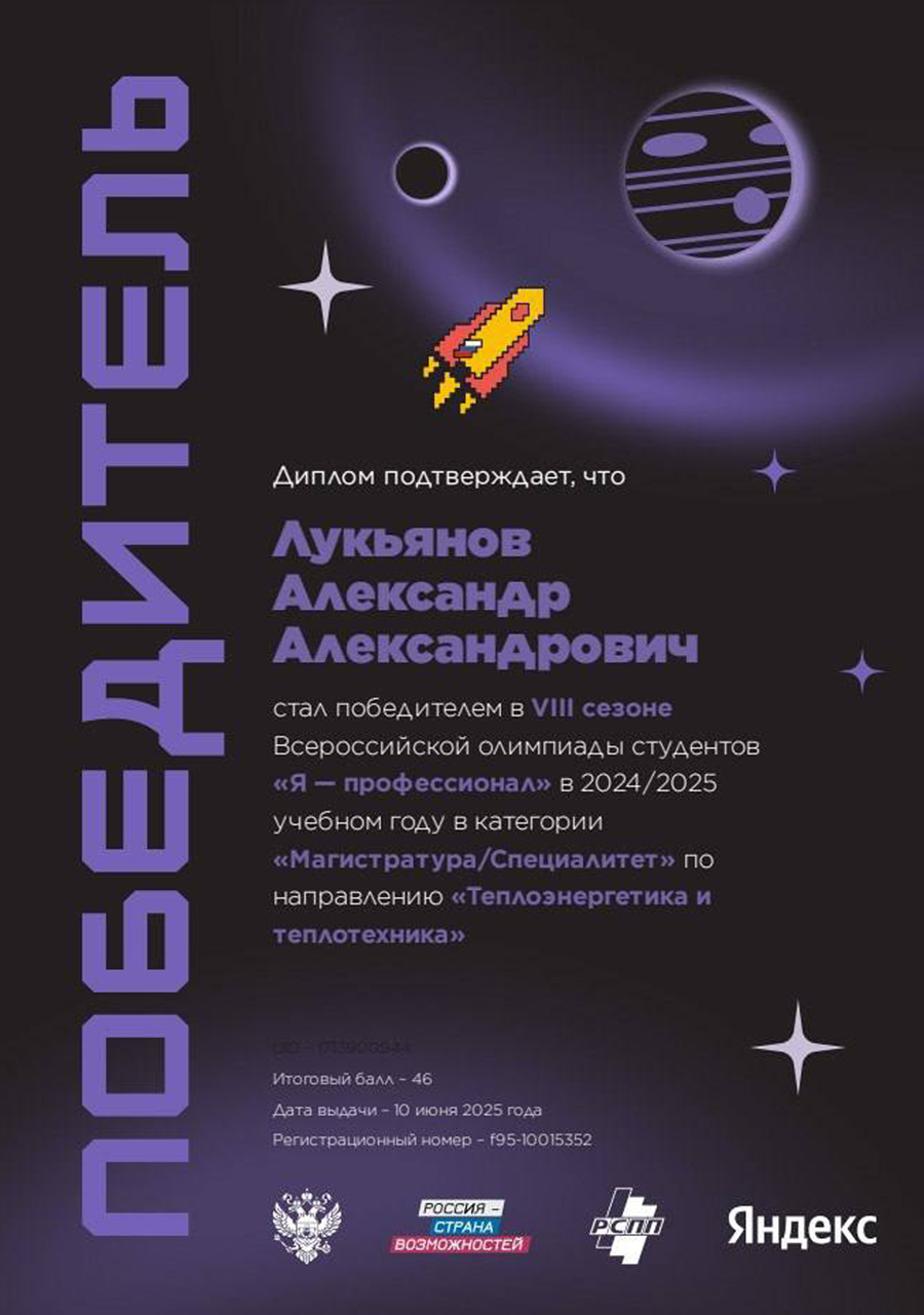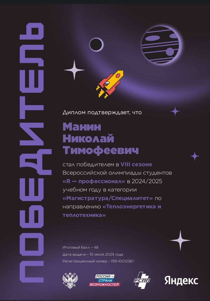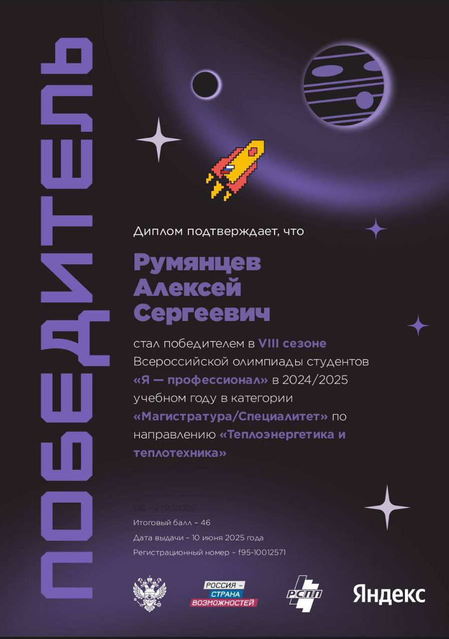 Победители по направлению «Теплоэнергетика и теплотехника» в категории "Магистратура / Специалитет":