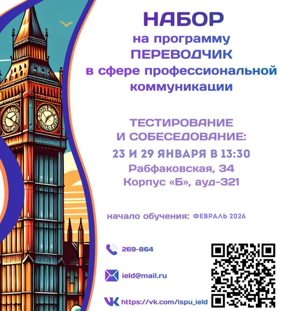 Информация о наборе в группу обучения по программе «Переводчик в сфере профессиональной коммуникации»|