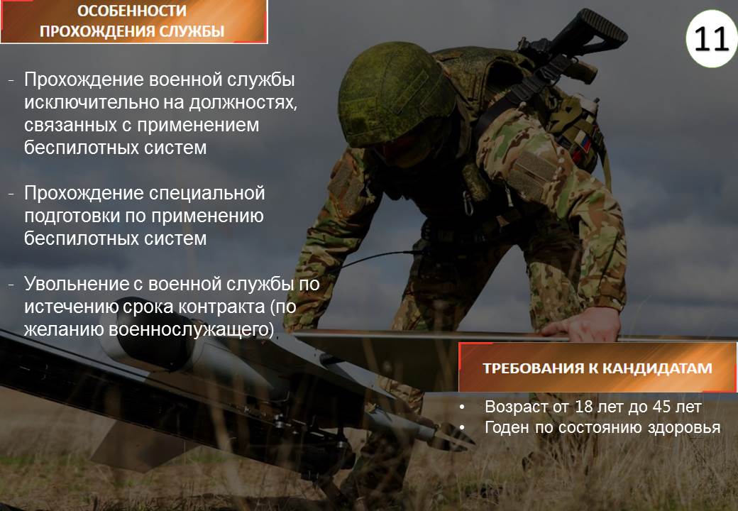 - Прохождение военной службы исключительно на должностях, связанных с применением БПЛА.