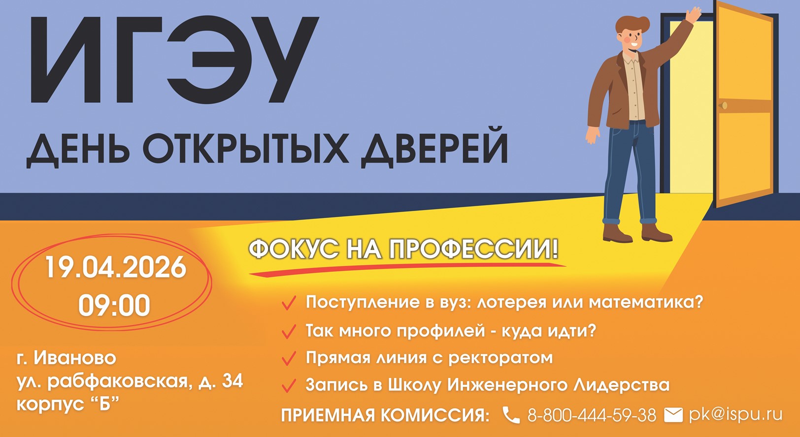 Уважаемые абитуриенты, 19 апреля двери ИГЭУ открыты для всех желающих!